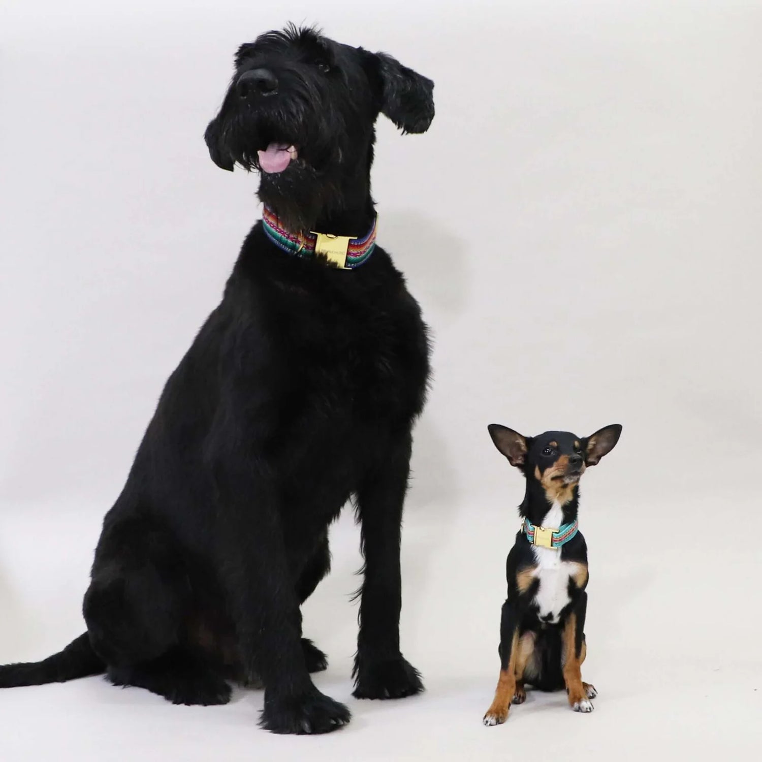 We advise measuring your dog's neck before purchasing a new collar to make sure you get the perfect fit. Using a soft measuring tape, measure their neck at the widest point leaving space for two fingers to fit between the tape and the neck so it's not too tight. If your dog is between sizes, we suggest going up a size.
