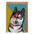 This gorgeous husky dog is Bowie themed with those incredible eyes and lightening image over the eye. Our gorgeous Husky dog illustration has no text so can be used for many occasions for your dog loving friends! This cute and fun card is perfect for birthdays and general celebrations.
