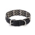 De Peruvian Black halsband is uniek met zijn geometrische patroon in opvallende, contrasterende kleuren. Het is geen typische touw- of lederen halsband, maar gevlochten met 100% Italiaans gevlochten organisch katoen, afgewerkt met natuurlijk Frans leder en draaibare zilveren (nikkelvrije) hardware.Deze hondenhalsband heeft een zeer hoge kwaliteit en tegelijkertijd een heel origineel en leuk ontwerp.