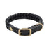 Gevlochten gevet lederen hondenhalsband in zwart afgewerkt met hardware van echt messing.