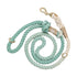 Routebeschrijving: O-ring (aan het uiteinde van de riem) is volledig aanpasbaar aan elke locatie op de riem. Draai door het vlechtwerk om de ring naar de gewenste locatie te verplaatsen voor het aanpassen van de lengte van de halsband* (voor uw pup) of voor het bevestigen van poeplussen of poepzakhouders. De O-ring (op het handvatuiteinde) is volledig afneembaar door openen/sluiten en ook handig voor poeplussen of poepzakhouders.